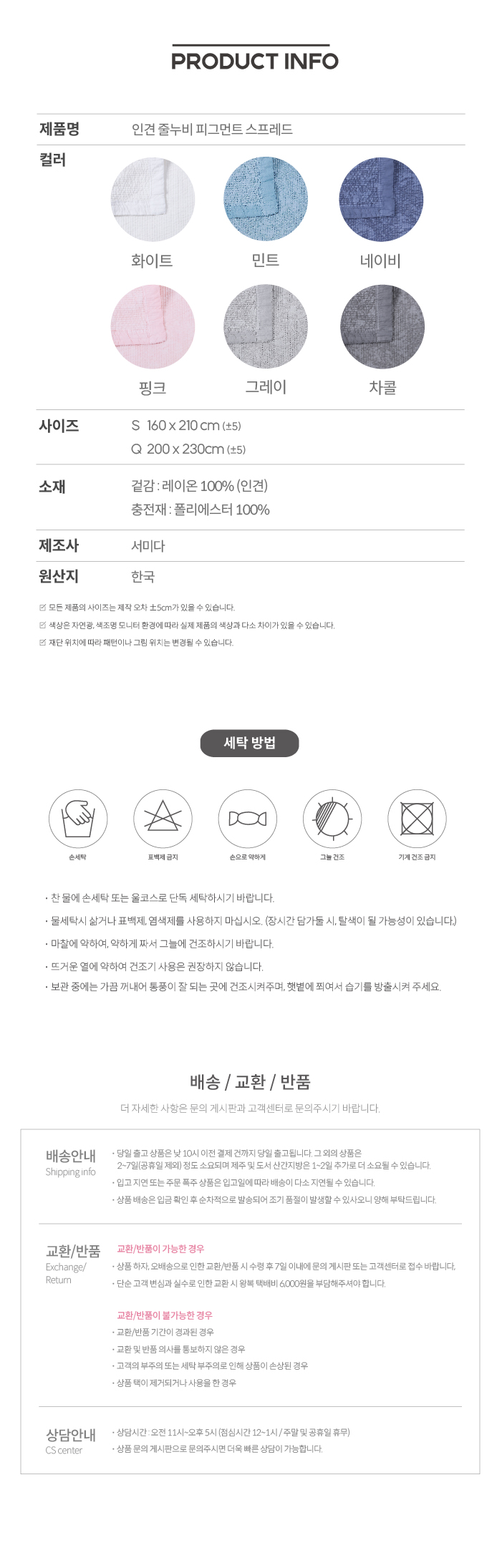 인견 줄누비 피그먼트 스프레드 (일반형)