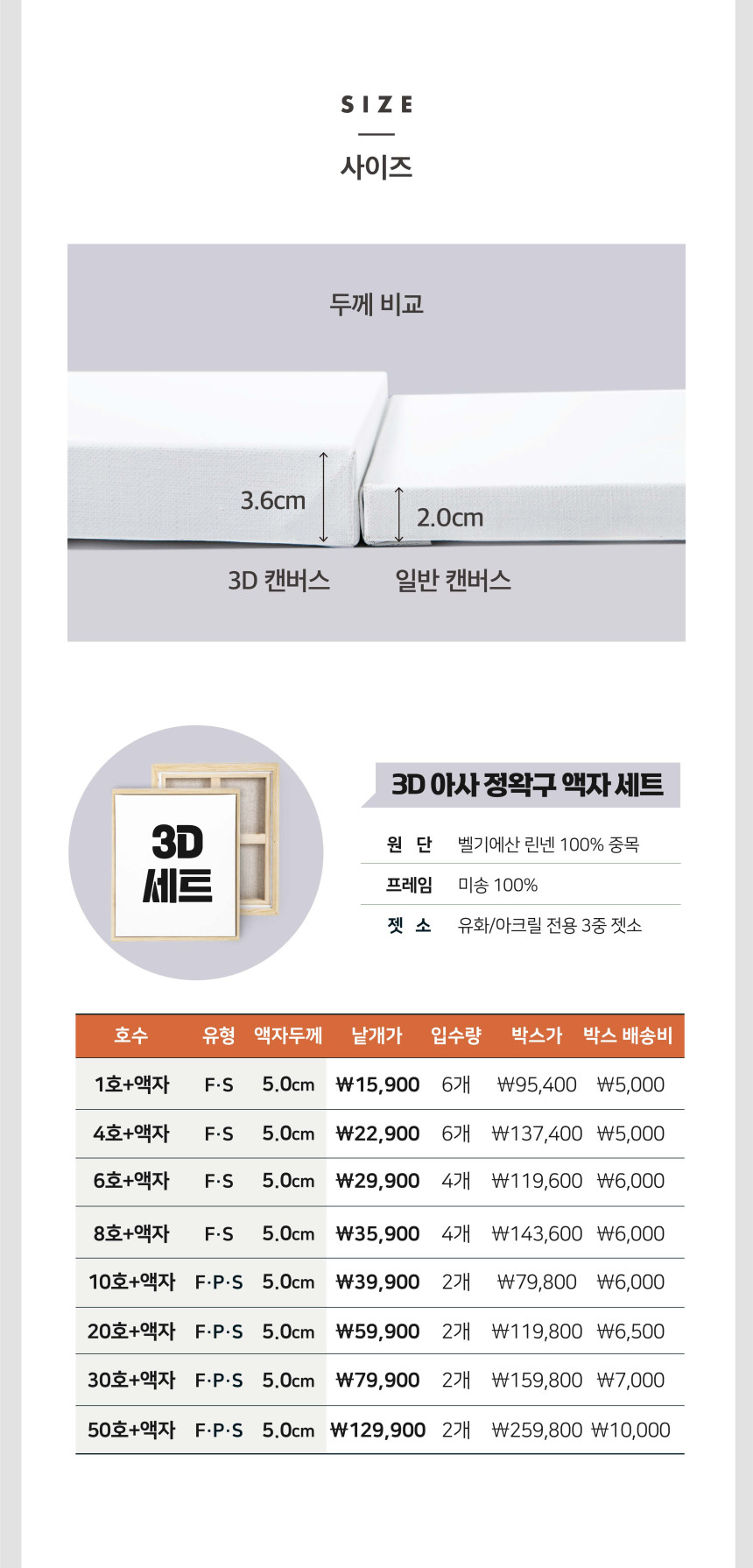 50호 두께가 두꺼운 3D 아사 100% 정왁구 유화 아크릴 캔버스